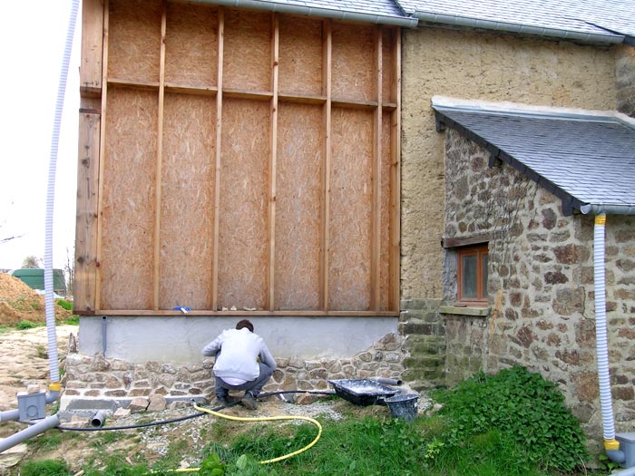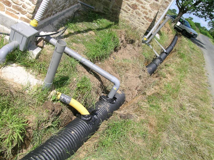 Busage du fossé avec raccords qui vont bien des drains intérieurs et extérieurs.