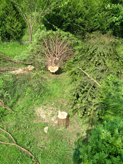 La règle : on coupe des sapins, on garde les fruitiers.. Pour l'instant..