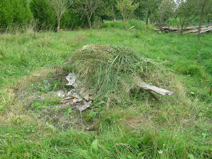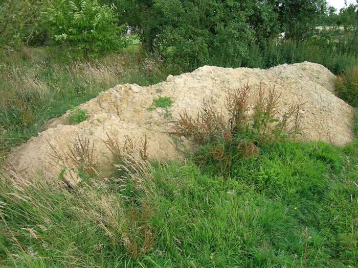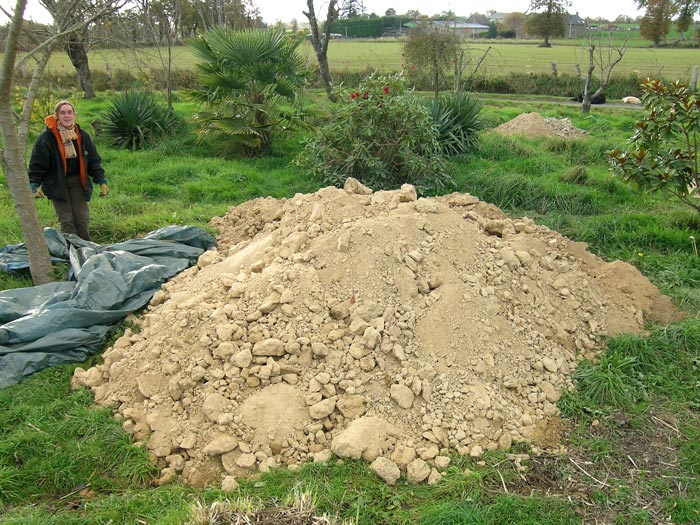 Tas de terre enlevée des murs de la maison que l'on réutilisera pour construire les murs des extensions..
