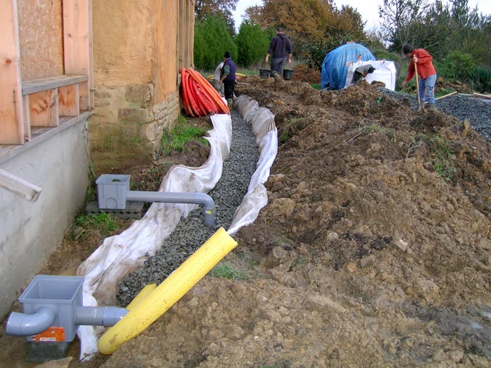 Drainage extérieur + réseau d'eaux pluviales.