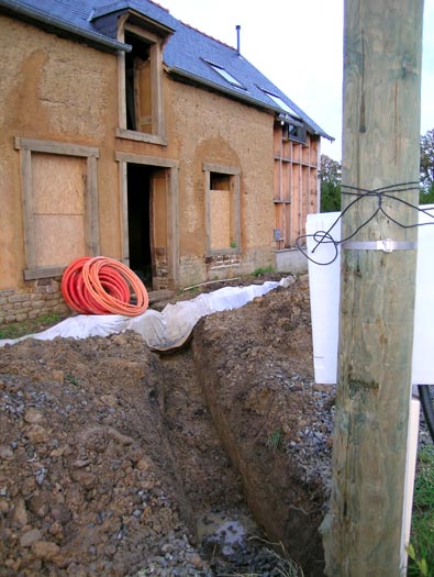 Tranchée pour passer l'électricité et le téléphone.