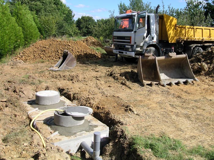 Mise en place de l'assainissement et du récupérateur d'eau de pluie...