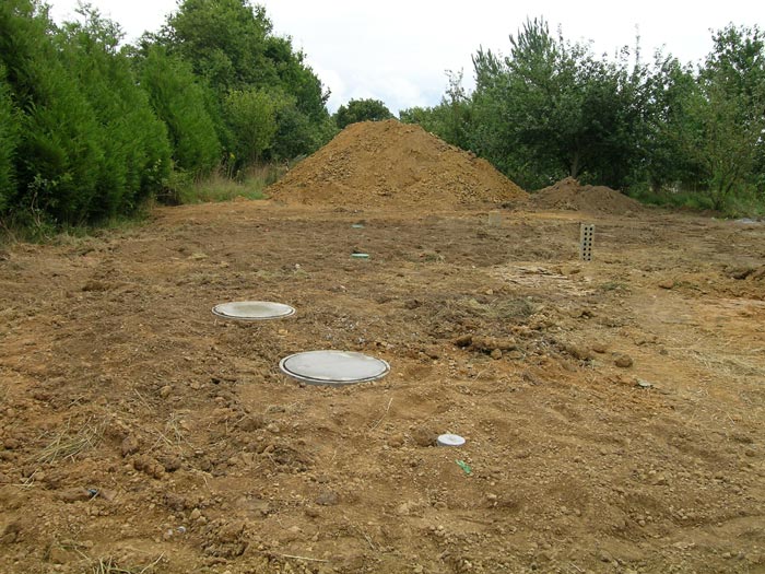 Trou de gauche : Récupérateur d'eau et trou de droite fosse sceptique.