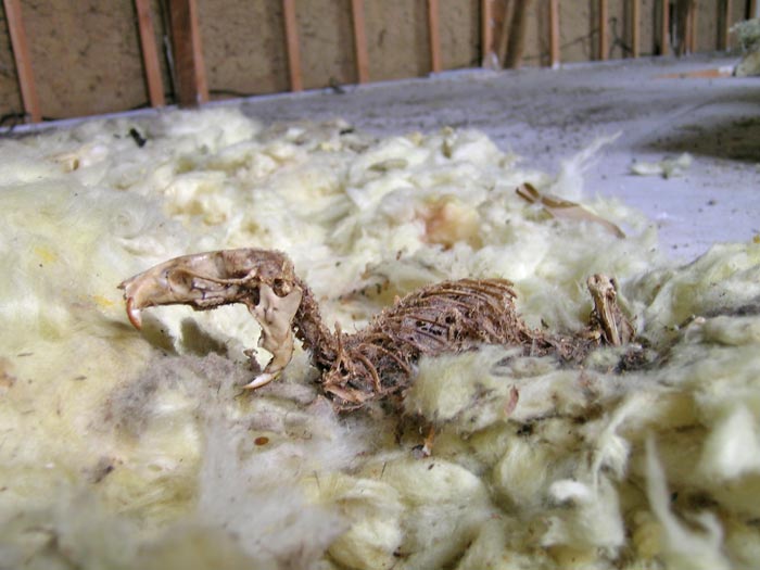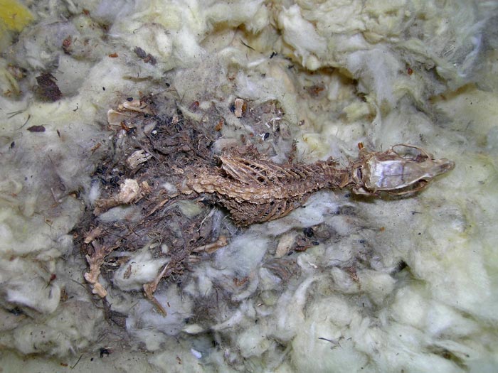 Les anciens habitants de la maison.. Retrouvés dans la laine de verre..