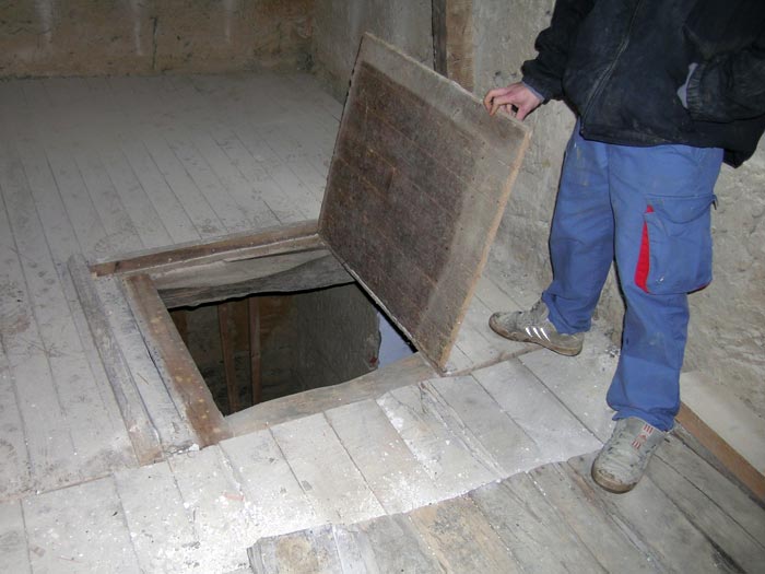 Sous le béton, à l'étage se cachait une trappe dont nous ignorions l'existance... Quelle surprise !