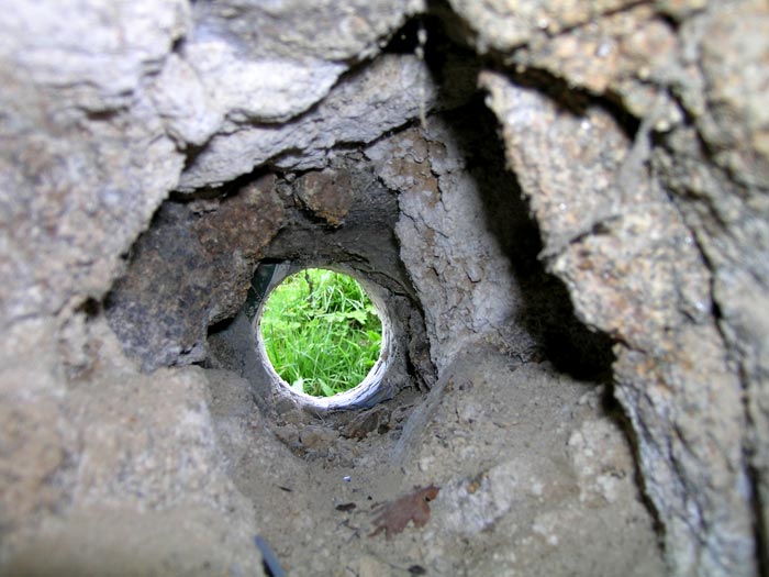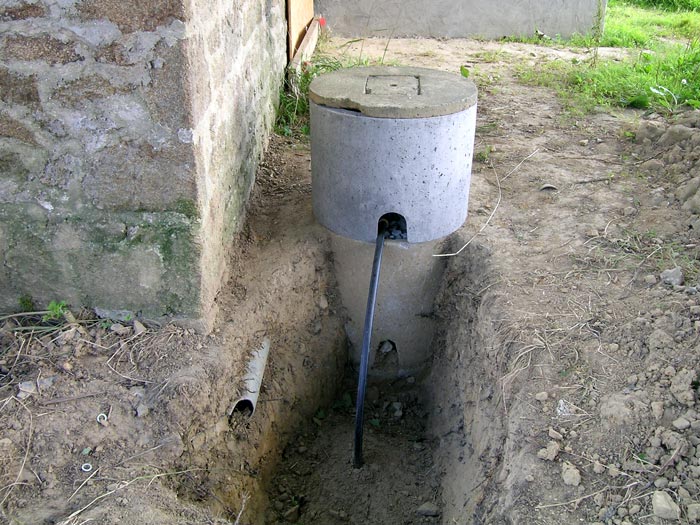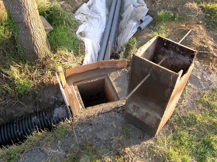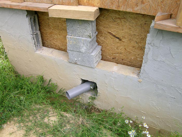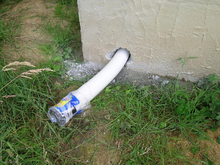 Un des points de sortie des drains intérieurs... Pente de 1 cm par mêtre à respecter !