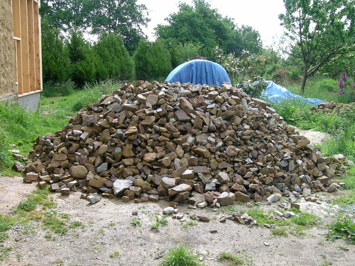 14 tonnes de grosses pierres livrées à domicile, pour faire le premier lit du hérisson (empierrement intérieur).