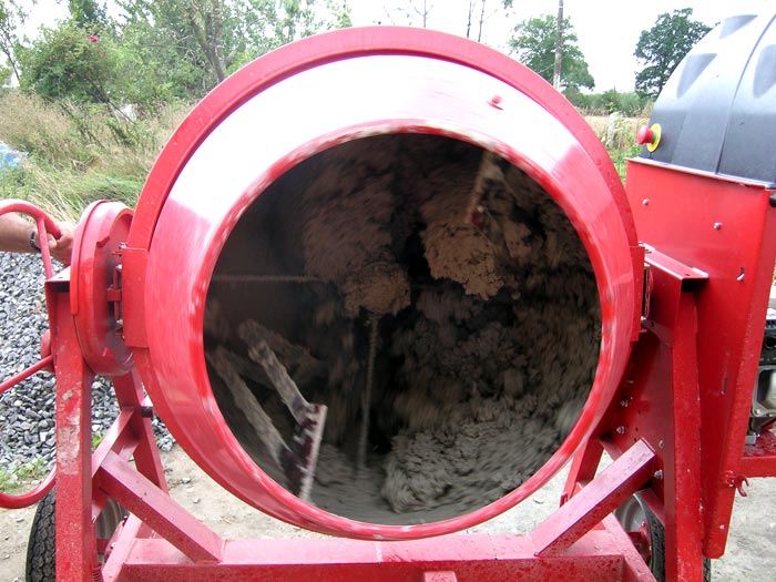 Première tournée de béton de chaux pour notre super bétonnière ! Plutôt bon !
