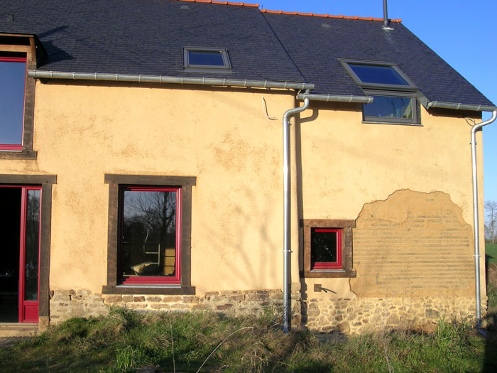 Soudain c'est le drame : un velux sans goutière + une tempète = un corps d'enduit par terre !