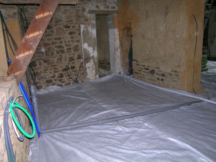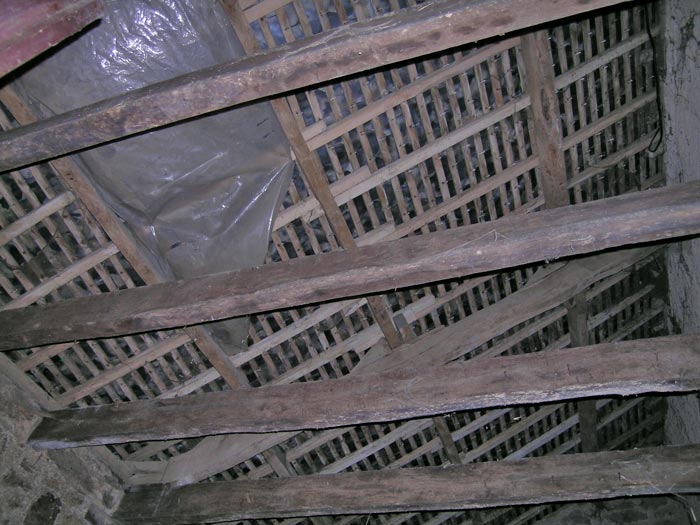 On a enlevé le plancher du grenier, bientôt les solives.. Ainsi le plafond de la pièce monte de 2 mètres..