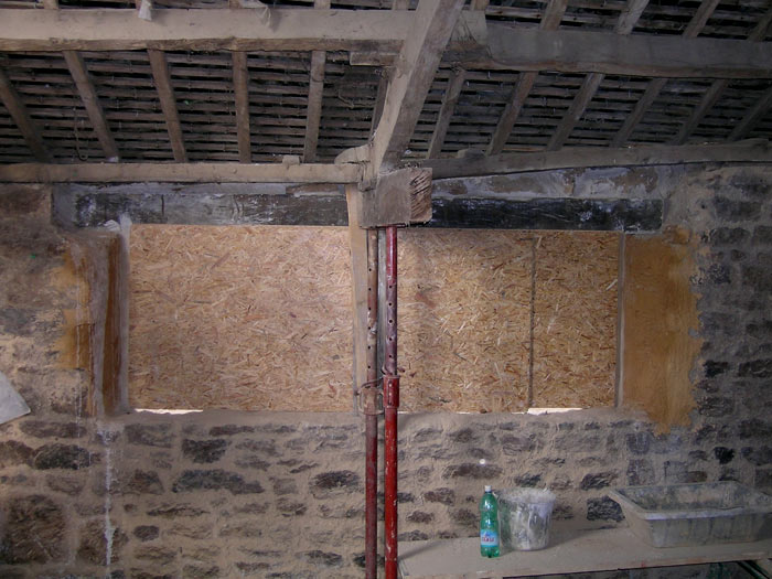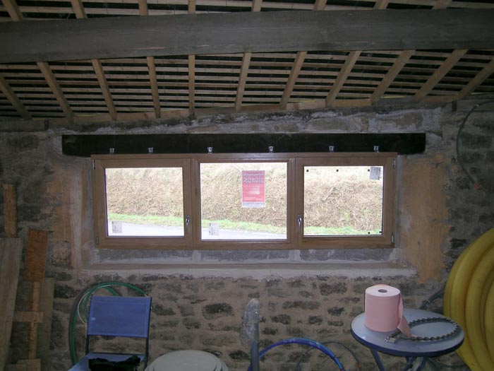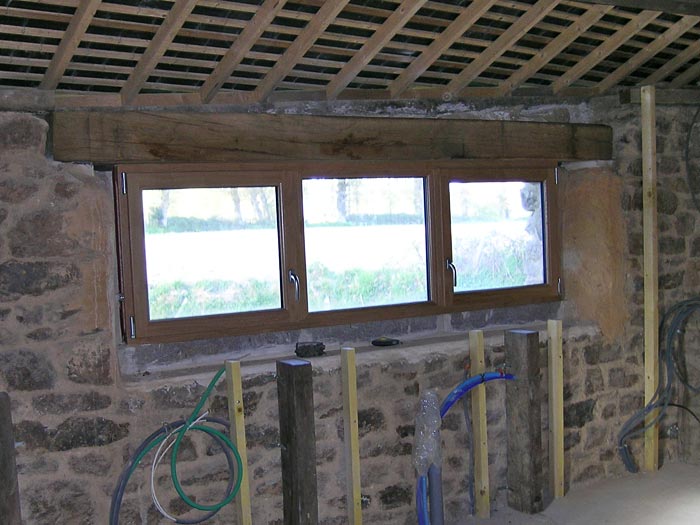 Pose du linteau au dessus de la fenêtre de la cuisine... Lourd le 20x20x300 en chêne...