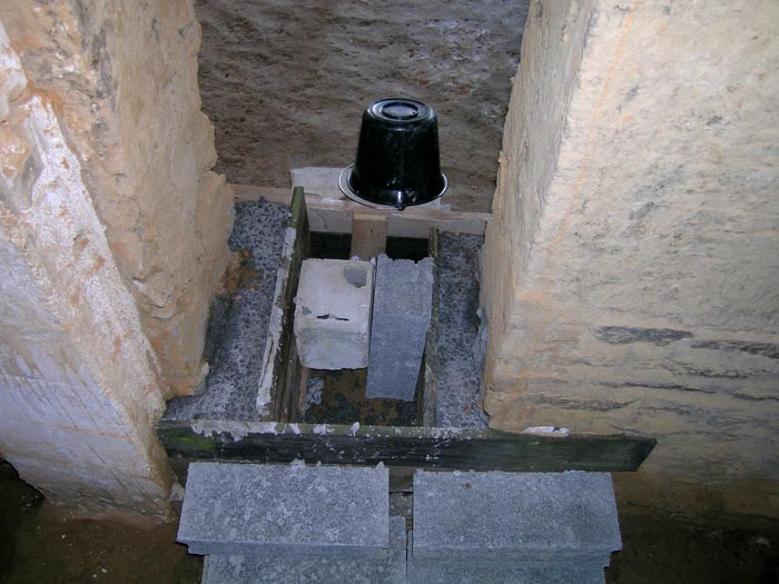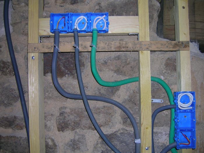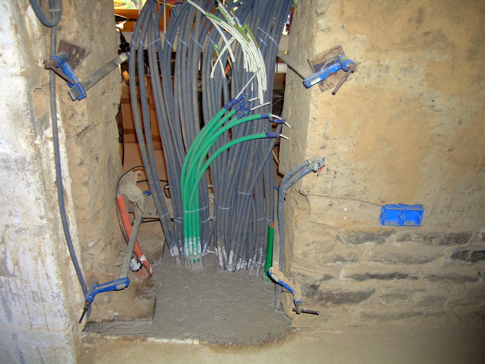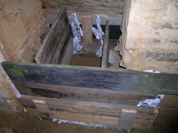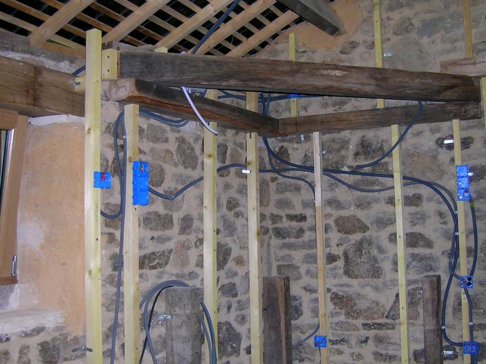 Coffrage pour consolider le sous-bassement pierre avec du béton en prévision du cablage éléctrique..