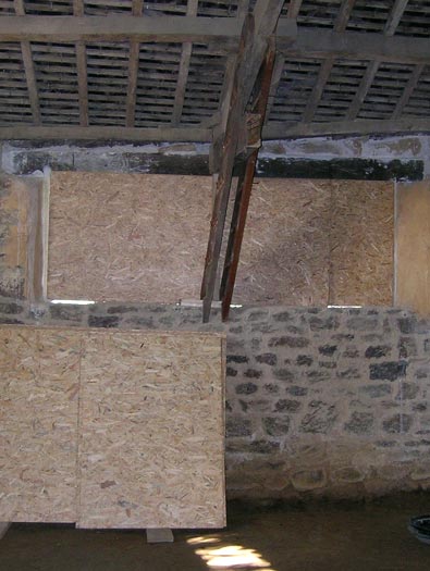 Étayage de fortune de la demie-ferme réalisé par le charpentier...