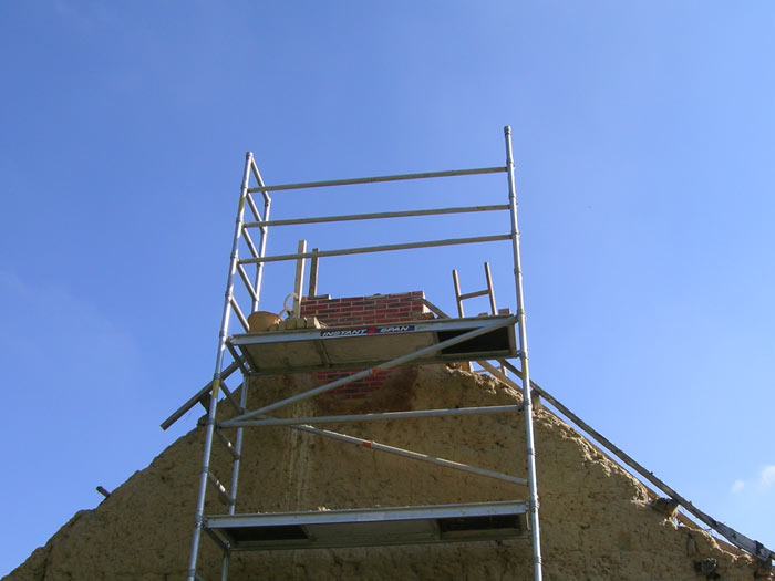 Le maçon a attaqué la nouvelle tête de cheminée.