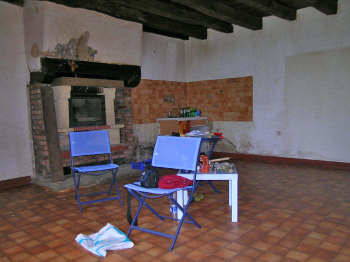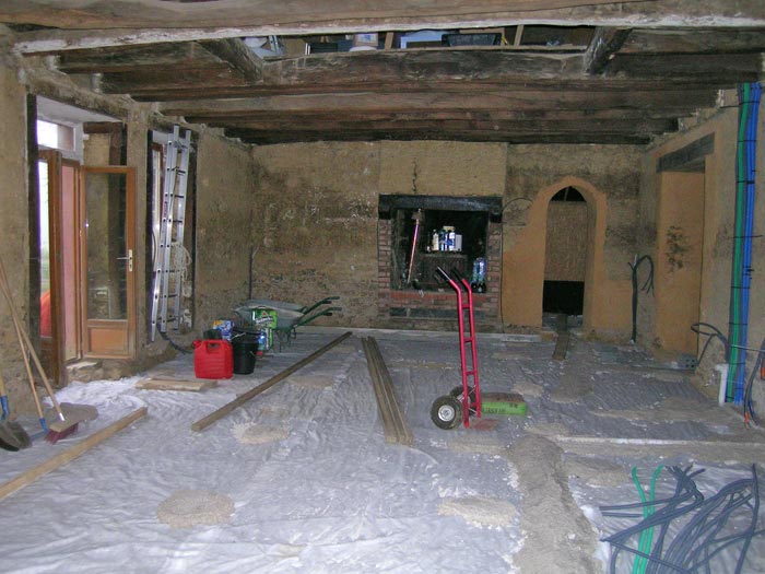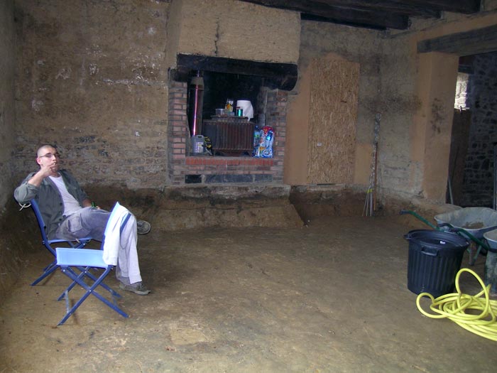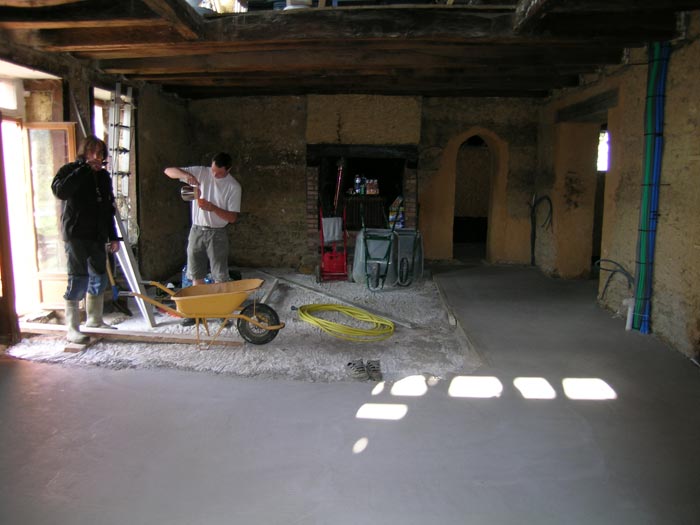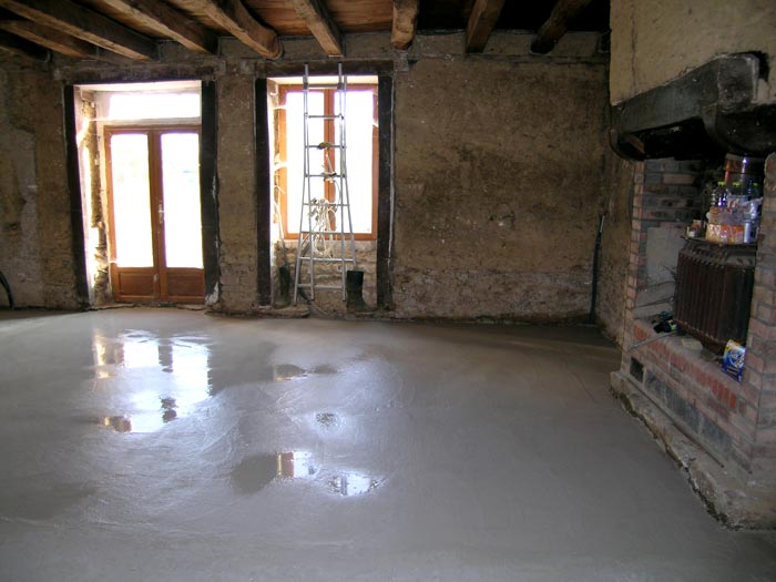Suite à une panne de chaux, nous n'avions pas finie la dalle du séjour... et c'est donc maintenant que ça se passe...