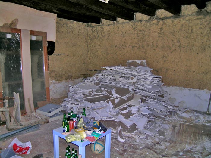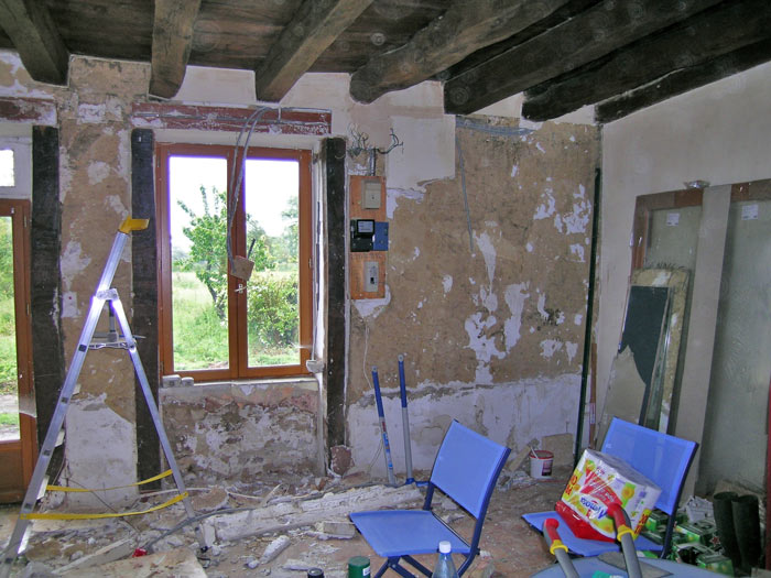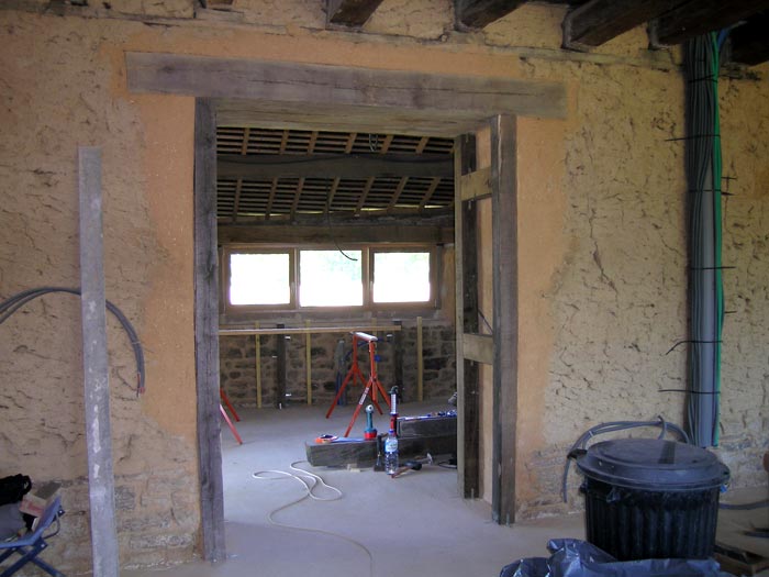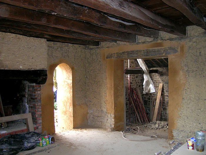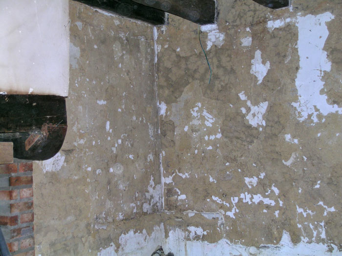 Il rest un peu de plâtre et un ancien enduit en terre..