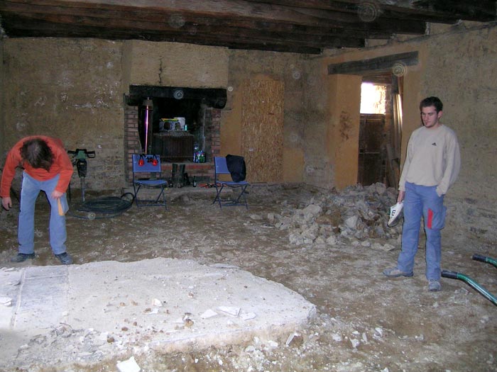 Cassage de dalle ! État d'avancement à la pause déjeuner !