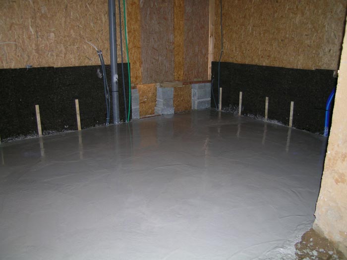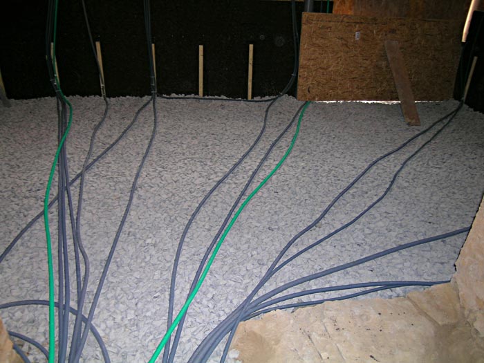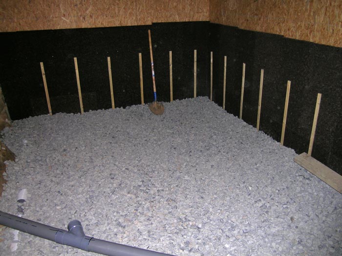 Première vue de l'intérieur. Liège pour l'isolation du sous-bassement et empierrement bien avancé...