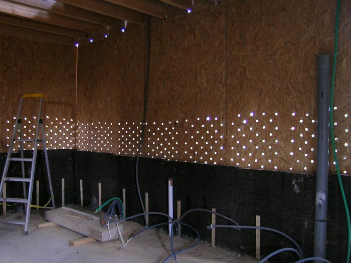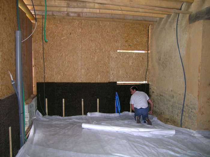 Persage des plaques d'OSB pour que le mur en terre respire bien...