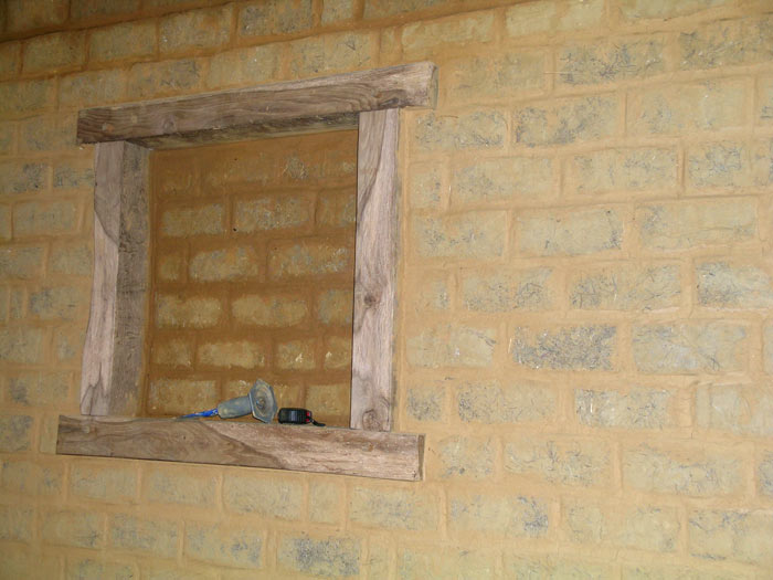Bouchage entre la carrée et la menuiserie => Terre crue + Paille