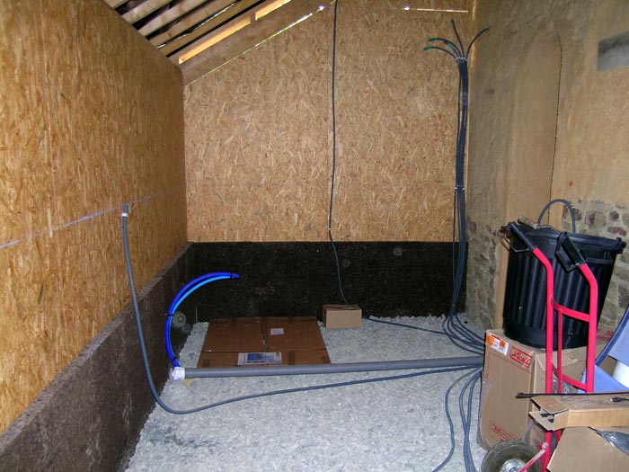 Eau + Électricité arrivées ! On aperçoit même la douche au fond (encore dans son carton !)...