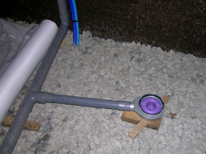 Mise en place du syphon de la douche qui sera inséré dans la dalle...